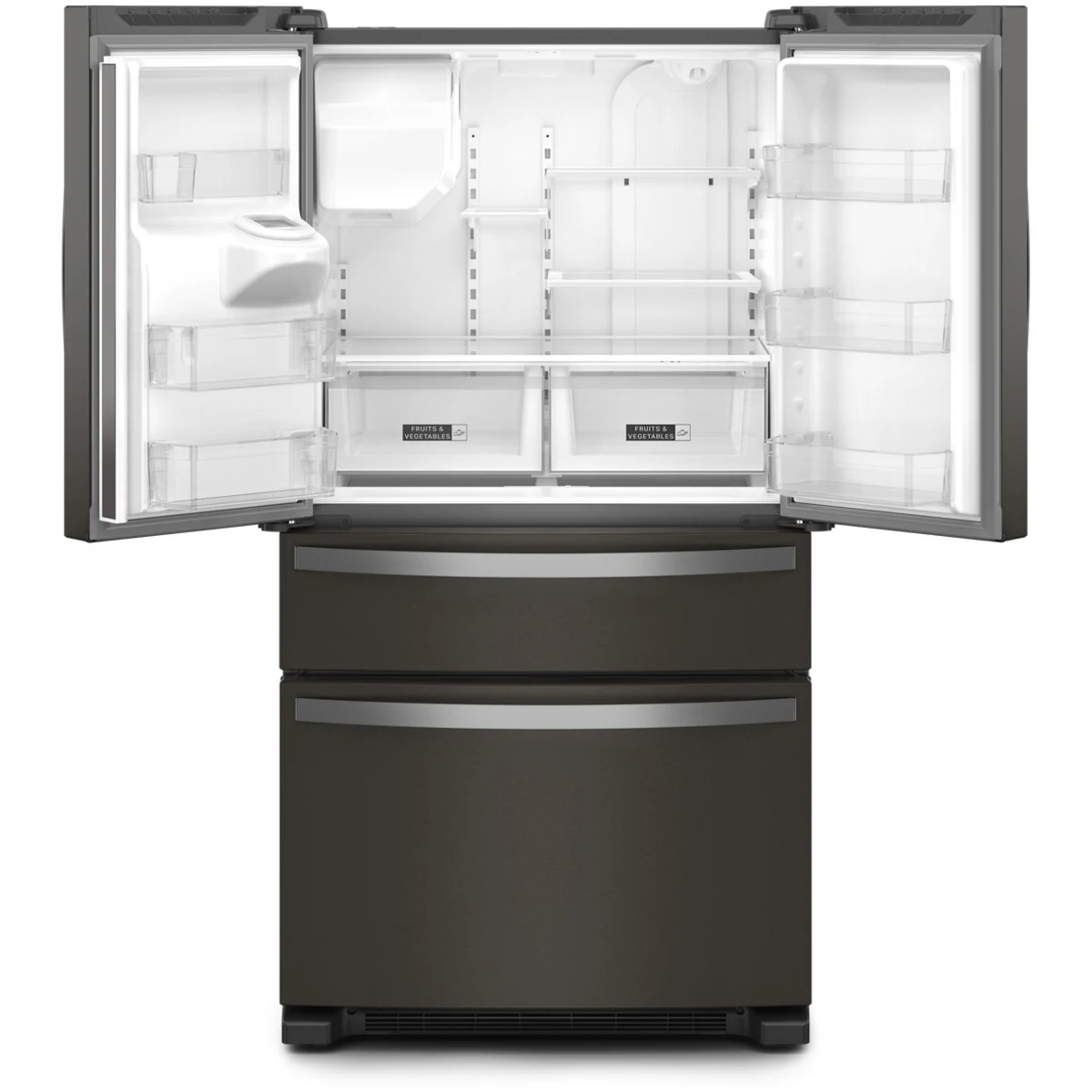 Whirlpool WRMF3636RV 36 Inch Freestanding 4-Door French Door Refrigerator with 24.5 Cu. Ft. Capacity, External Ice/Water Dispenser, Icemaker, and ENERGY STAR®: Fingerprint Resistant Black Stainless Steel